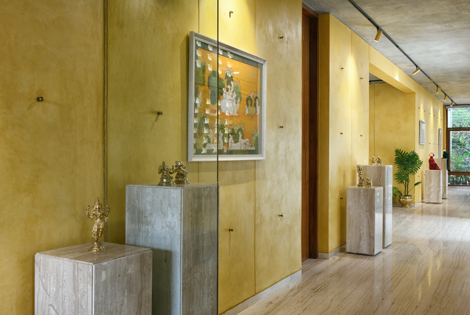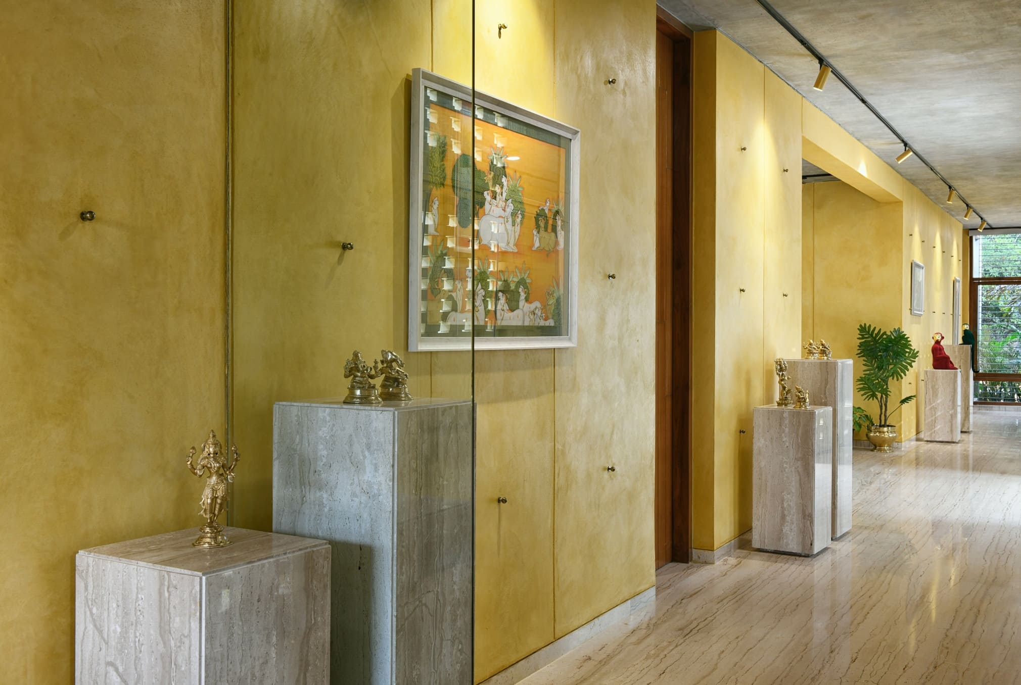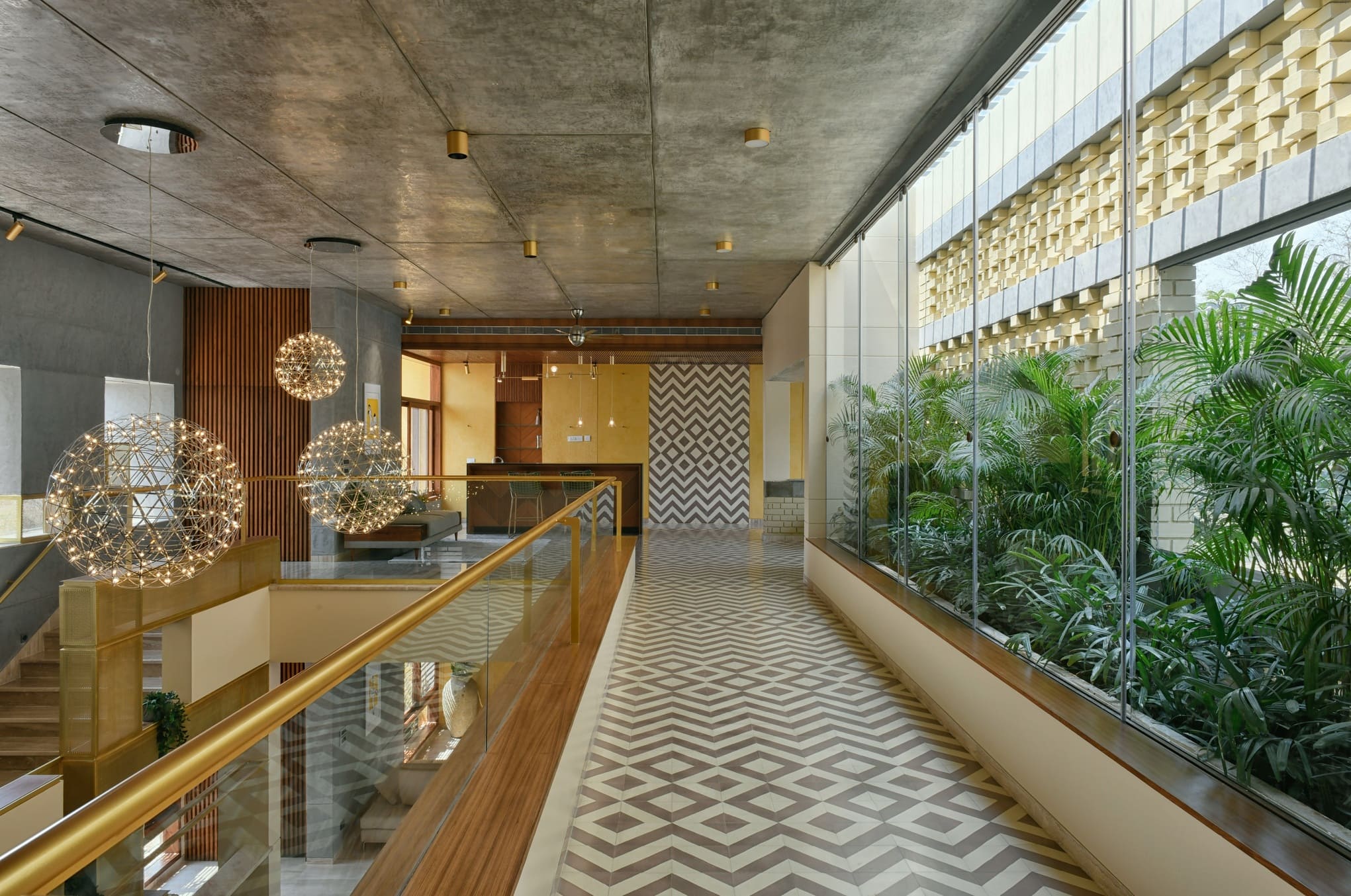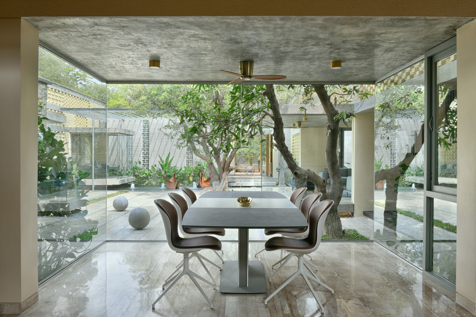 A home where lighting celebrates texture. Carefully placed beams highlight exposed brick, soften edges, and add warmth across courtyards and interiors — turning structure into story and light into atmosphere.