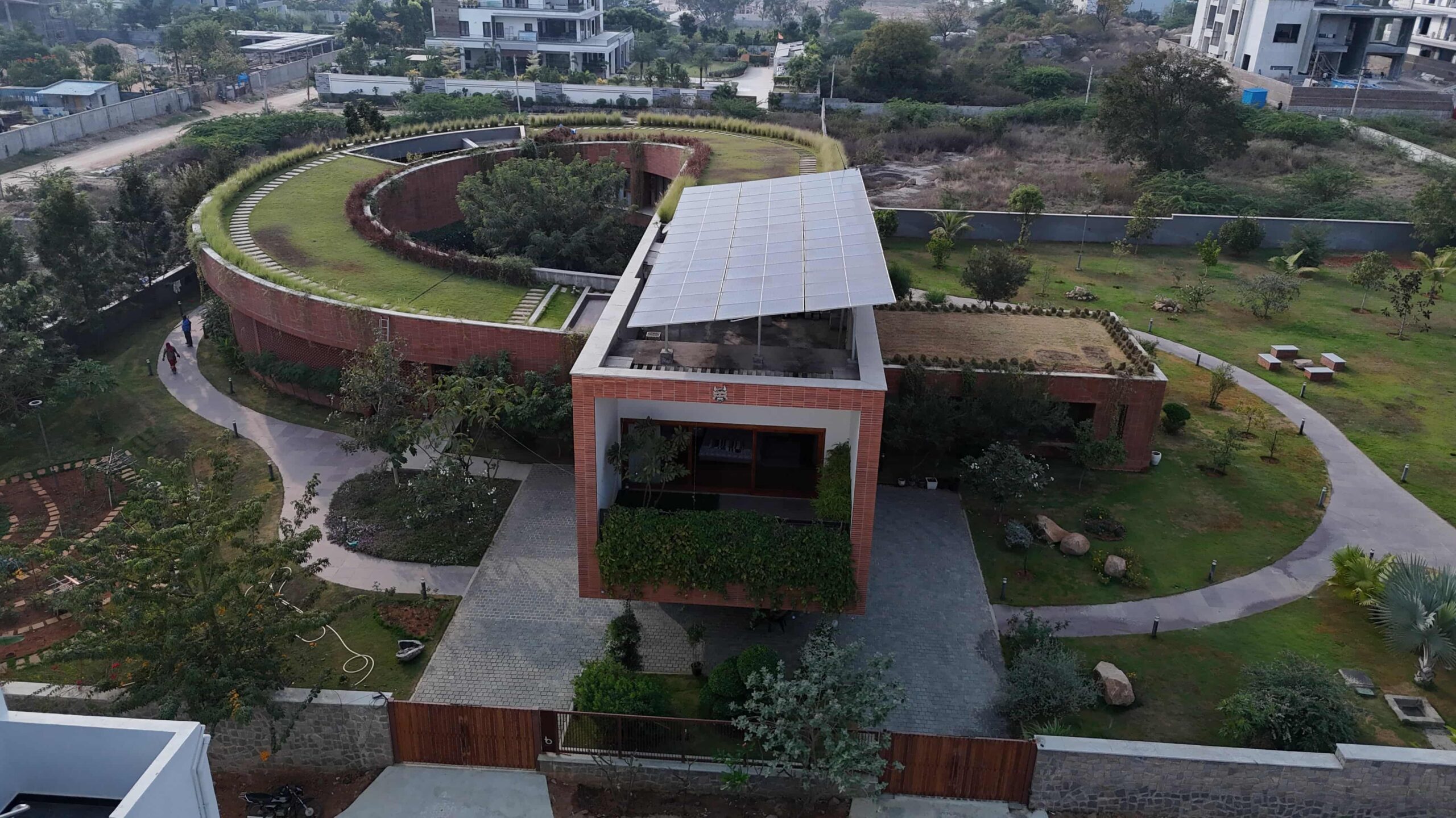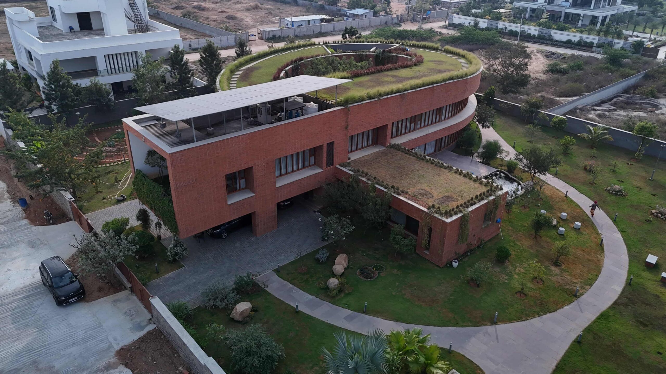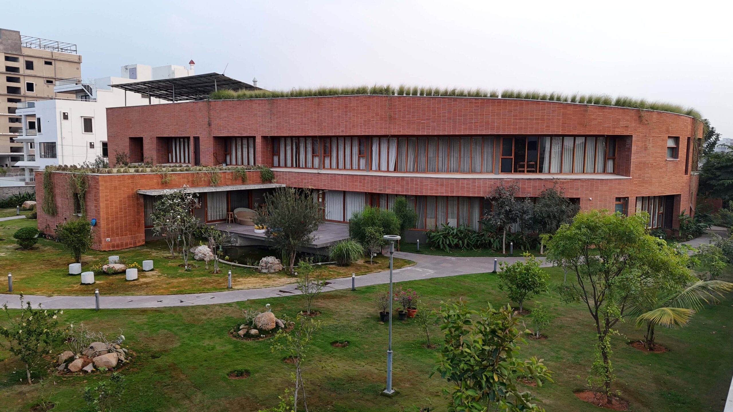 Levels Lighting transforms the exposed brick curves of the Green Roof Walk into a warm, nature-embracing retreat. Every corner reflects a quiet sophistication — where architecture and light move in harmony, creating seamless transitions between the indoors and the green outdoors.