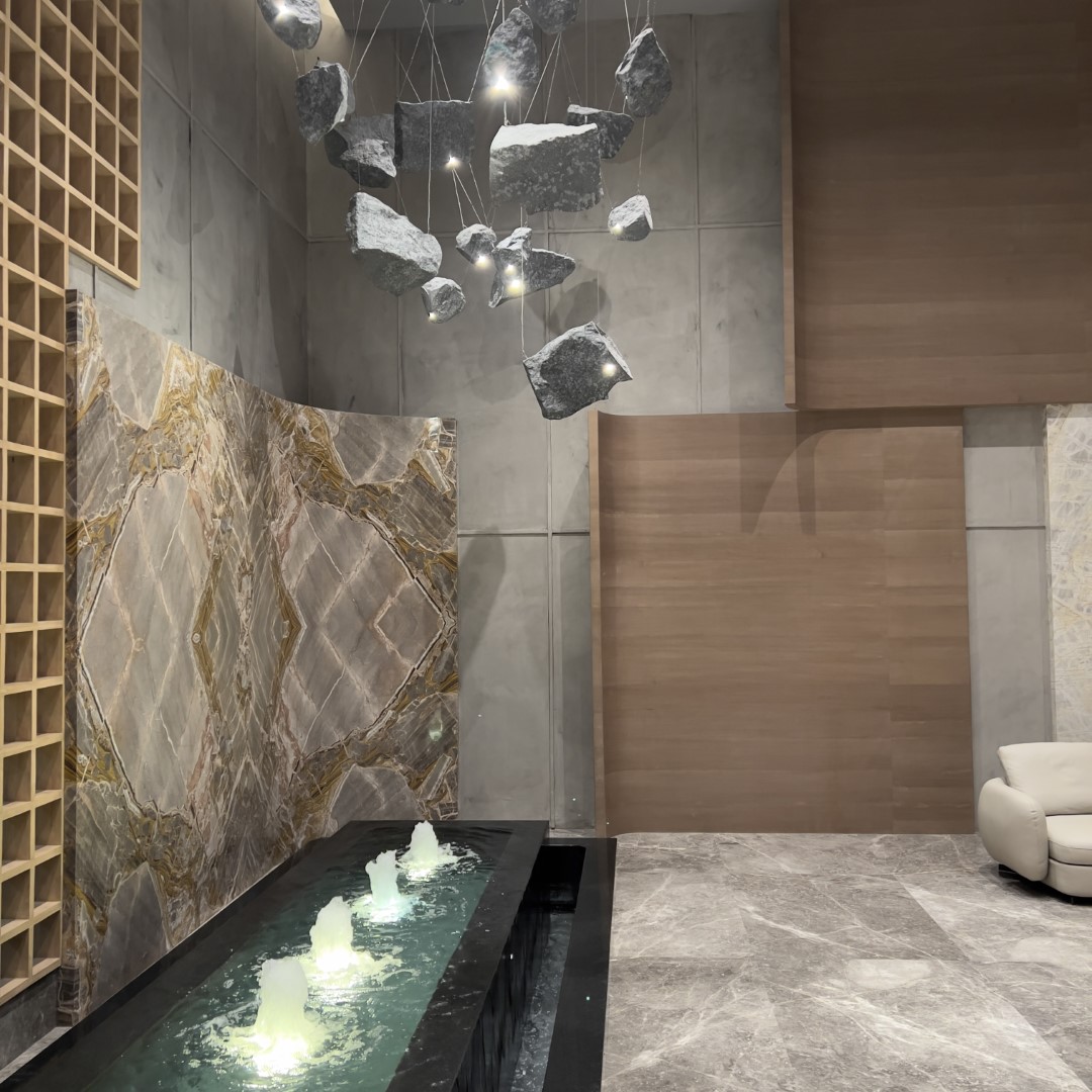 The cafe, designed to provide a cozy ambiance, featured a unique lighting arrangement that allowed patrons to appreciate the beauty of natural stones in a relaxed setting. In contrast, the conference room boasted a different lighting setup, balancing functionality with sophistication to foster a professional atmosphere. This meticulous interplay of lighting elements ensured each space resonates with the timeless beauty of the natural stones on display, creating a visually stunning and welcoming environment.