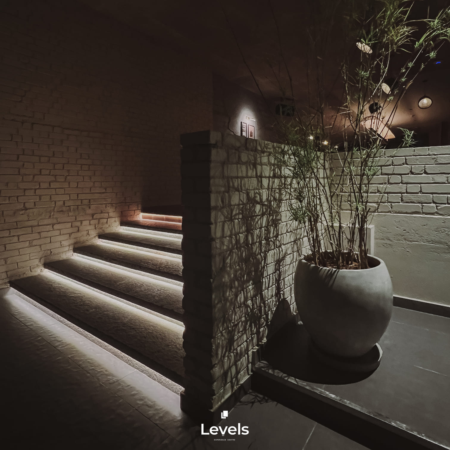 Lighting designed to match the soul of the space. A mix of pendants and ambient lighting creates a warm, inviting glow — setting the mood for conversation, craft, and quiet moments.