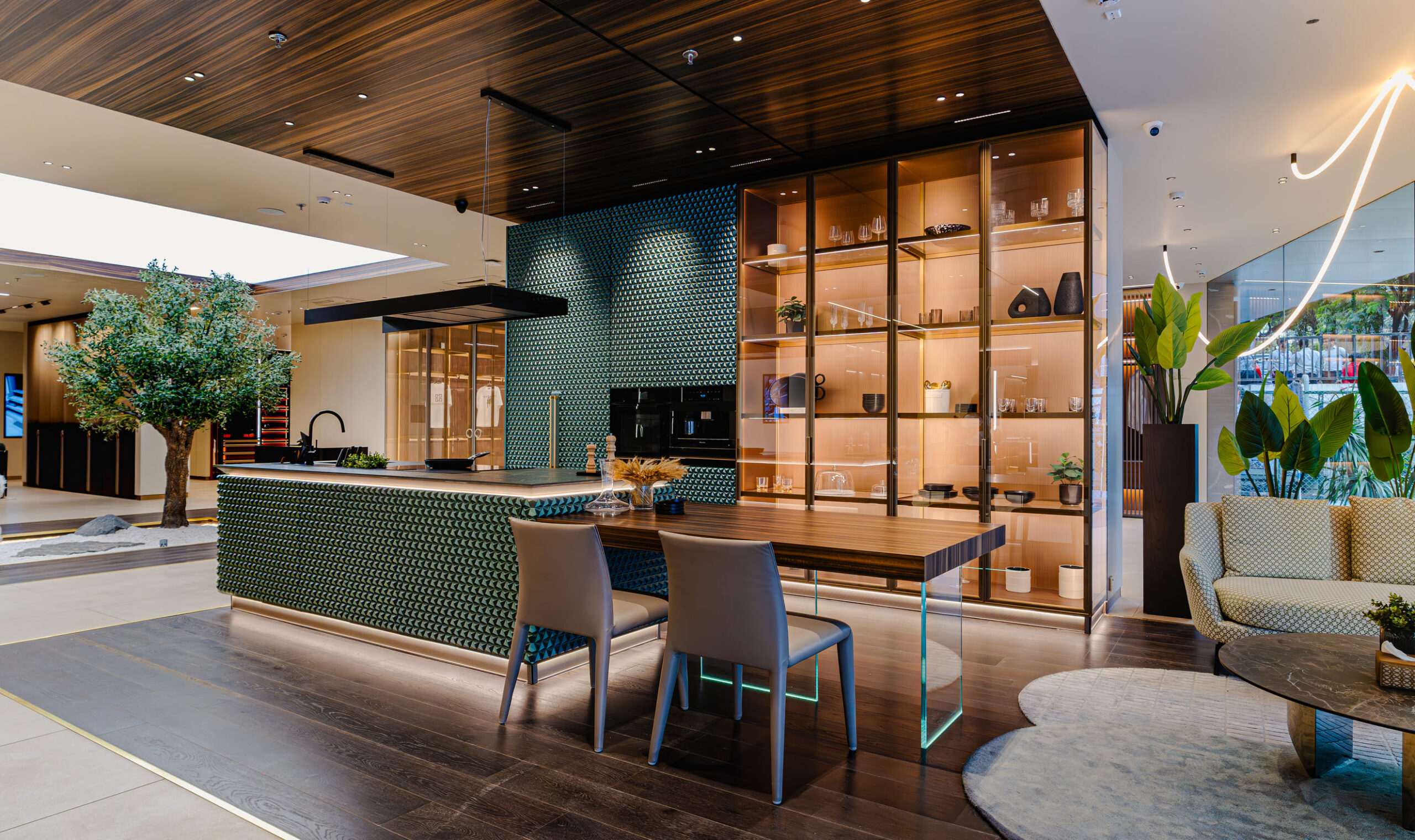 Lighting that works as a silent guide. Every beam is placed to highlight the product, direct attention, and strengthen the brand story — proving that the difference between a showroom and a space that sells is always the light.