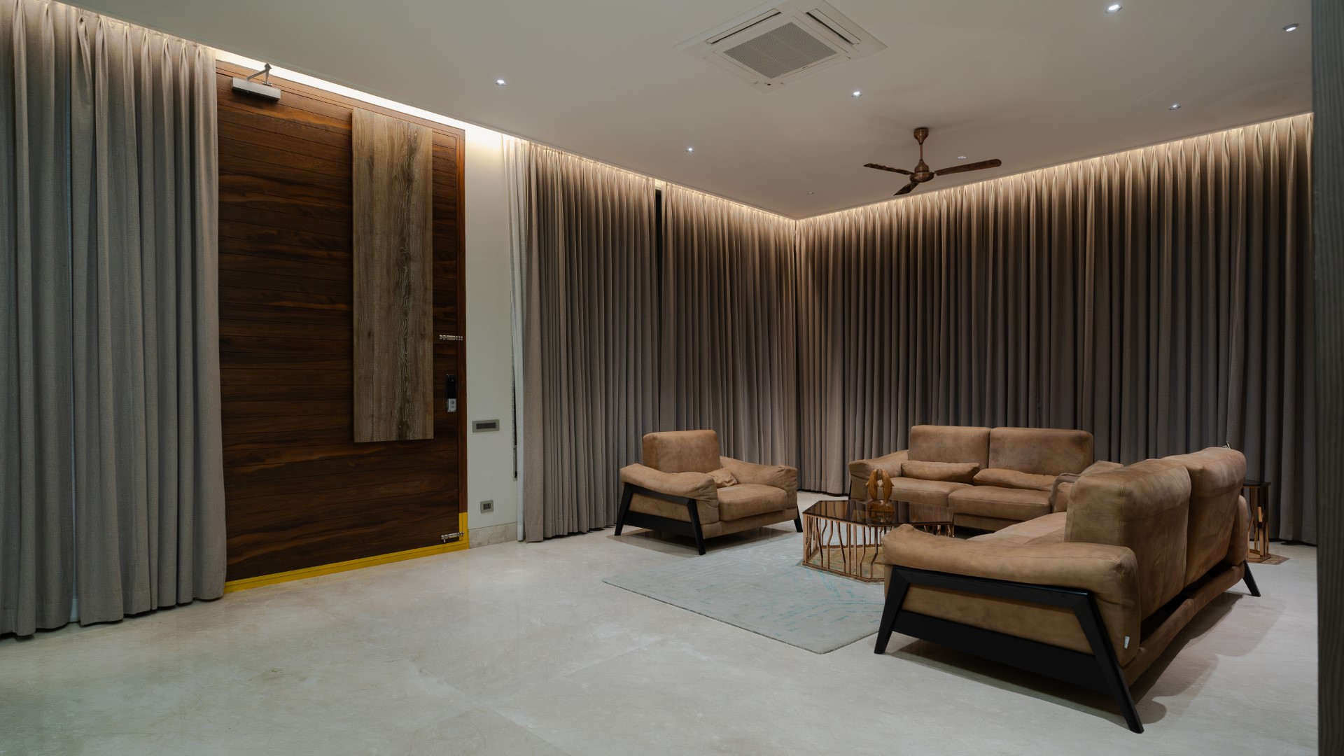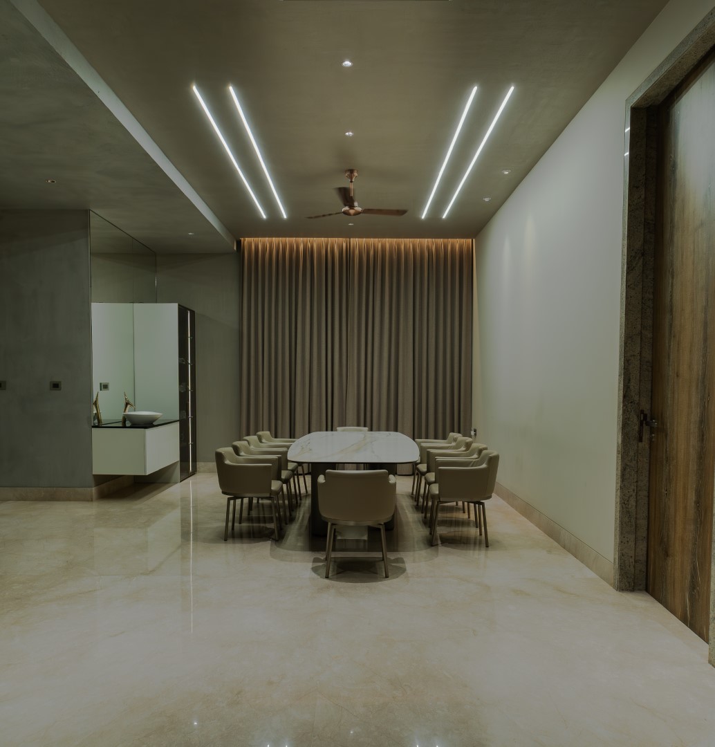 Our lighting solutions for the Srinivas Reddy House project encompass strategically placed fixtures to accentuate architectural elements, custom-designed focal points, captivating facade and landscape lighting, and warm-toned LEDs for ambiance.