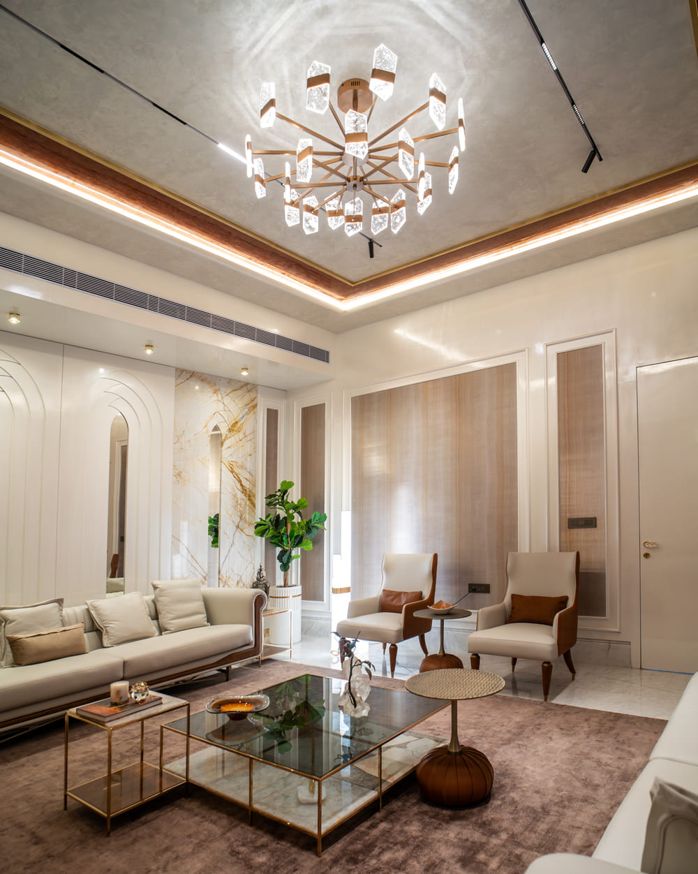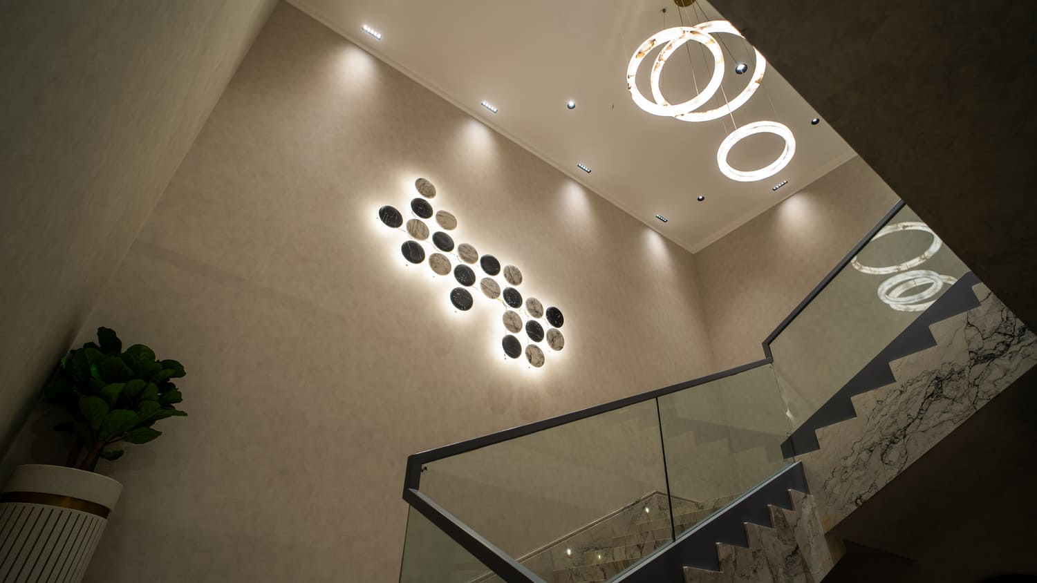 A balanced blend of architectural and ambient lighting that enhances the home’s design language. Every space feels layered, warm, and thoughtfully composed.